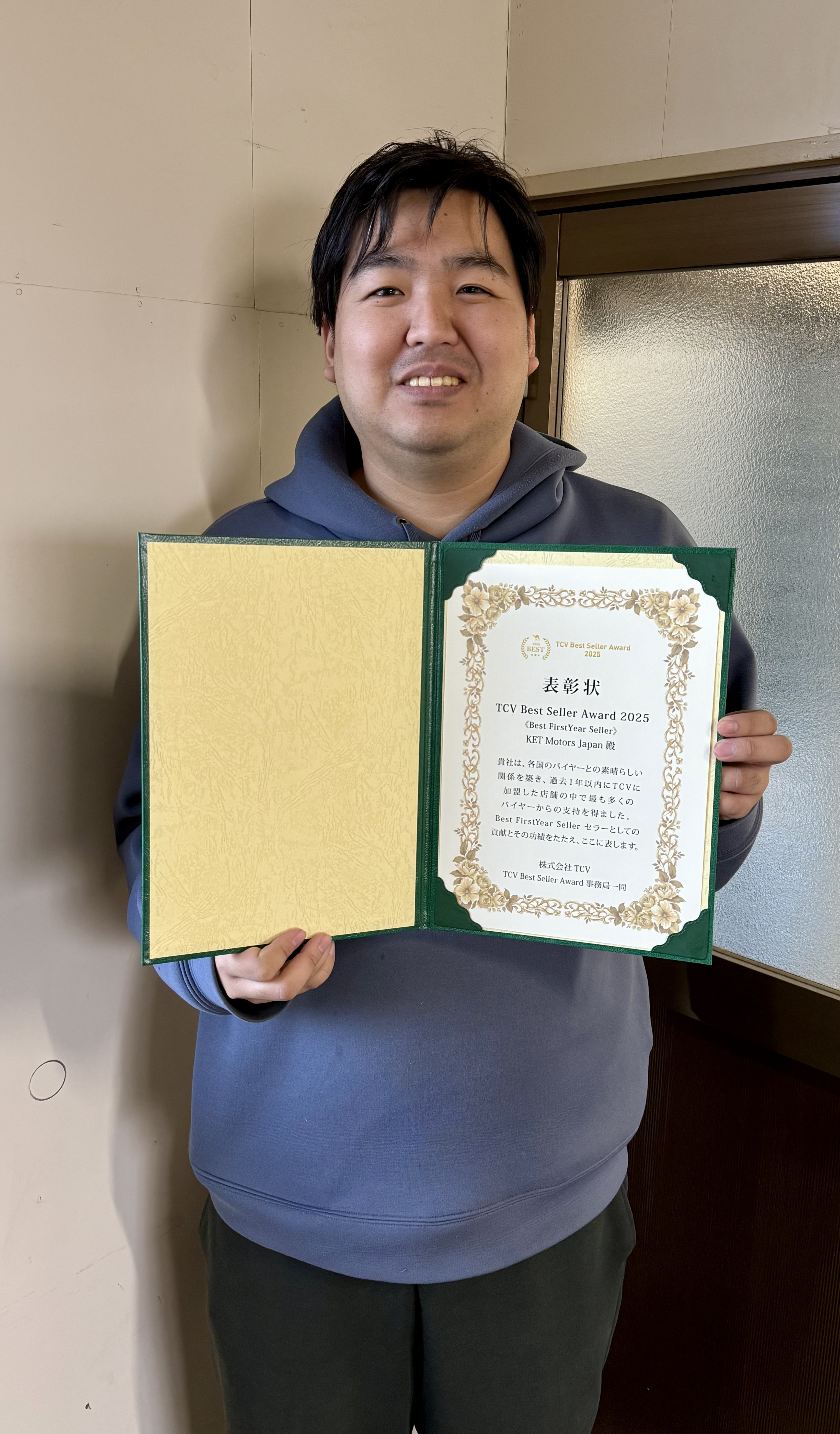 正直驚きました。TCVに加盟をしたのが2025年6月でしたので、まだスタートして半年を超えたタイミングです。アワード表彰の経緯を聞き、販売台数のみならず、バイヤー様に対する返信スピードや、販売後の車両評価などの総合的な判断と聞いておりますので、加盟後に私たちが心がけていたことが評価につながったことを素直に嬉しく思います。